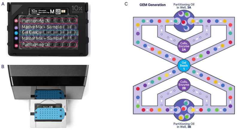 功能強(qiáng)大的單細(xì)胞Chromium X系統(tǒng)終于落地百邁客,也揭開其神秘的面紗。該系統(tǒng)依舊是在Next GEM的微流控原理基礎(chǔ)上,全程自動(dòng)化分選、捕獲、標(biāo)記數(shù)十萬個(gè)乃至百萬個(gè)單細(xì)胞微滴,并通過10x Barcode條形碼識(shí)別每一個(gè)微滴,從而實(shí)現(xiàn)了單個(gè)細(xì)胞基因表達(dá)檢測。