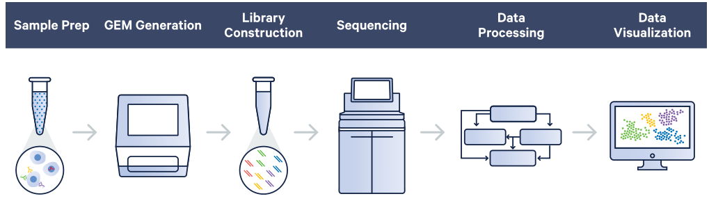 圖4. Chromium X系統(tǒng)單細(xì)胞測序?qū)嶒?yàn)流程