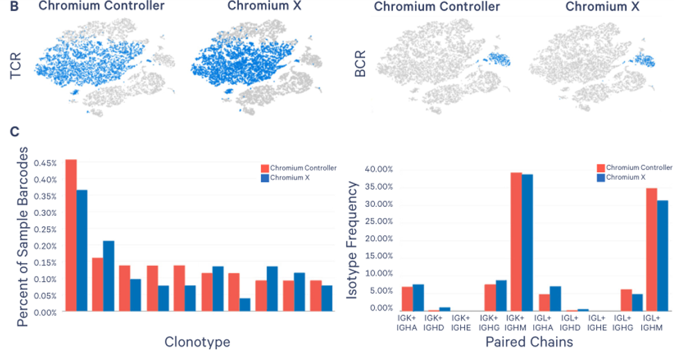 圖7. Chromium X系統(tǒng)單細(xì)胞免疫組庫數(shù)據(jù)分析