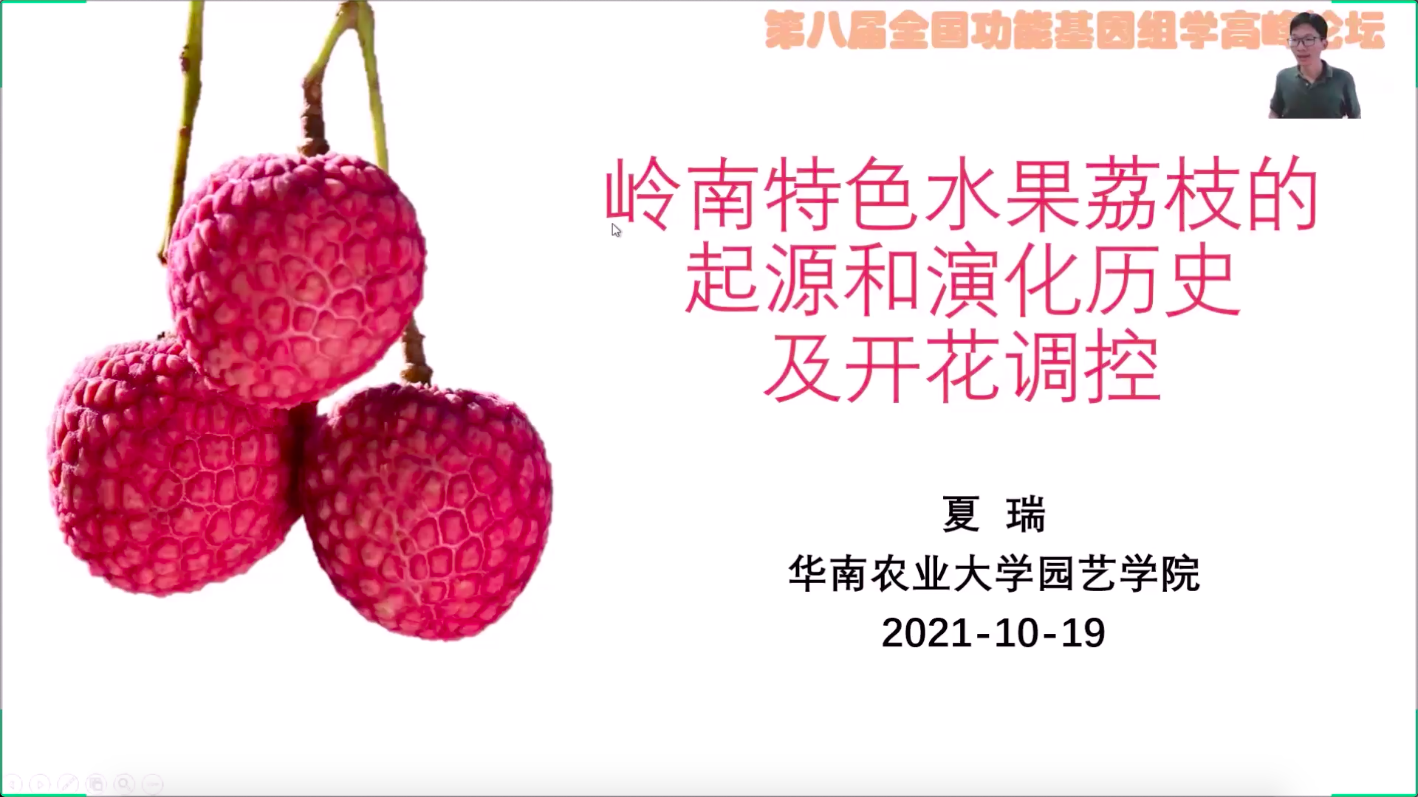華南農(nóng)業(yè)大學夏瑞教授對嶺南特色水果荔枝的起源、演化歷史及開花調(diào)控進行了闡述,展示了無患子科荔枝“妃子笑”單倍型基因組的構(gòu)建與荔枝的演化分析,并介紹了72份荔枝種質(zhì)資源的重測序研究,表明栽培荔枝可能起源于兩條獨立的馴化事件;另外,還闡述了荔枝開花相關(guān)基因的研究,表示這些關(guān)于荔枝基因組和馴化歷史的結(jié)果必將加速荔枝及其它相關(guān)無患子科植物的基礎(chǔ)研究和遺傳改良。
