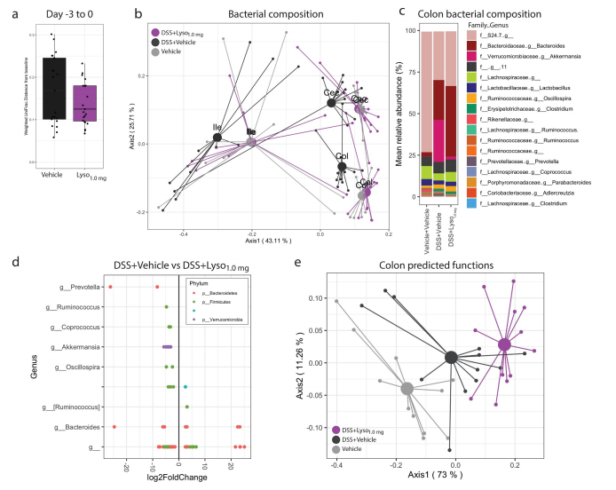 圖5. 溶菌酶利用腸道微生物群來緩解DSS誘導(dǎo)的BALB/c小鼠結(jié)腸炎