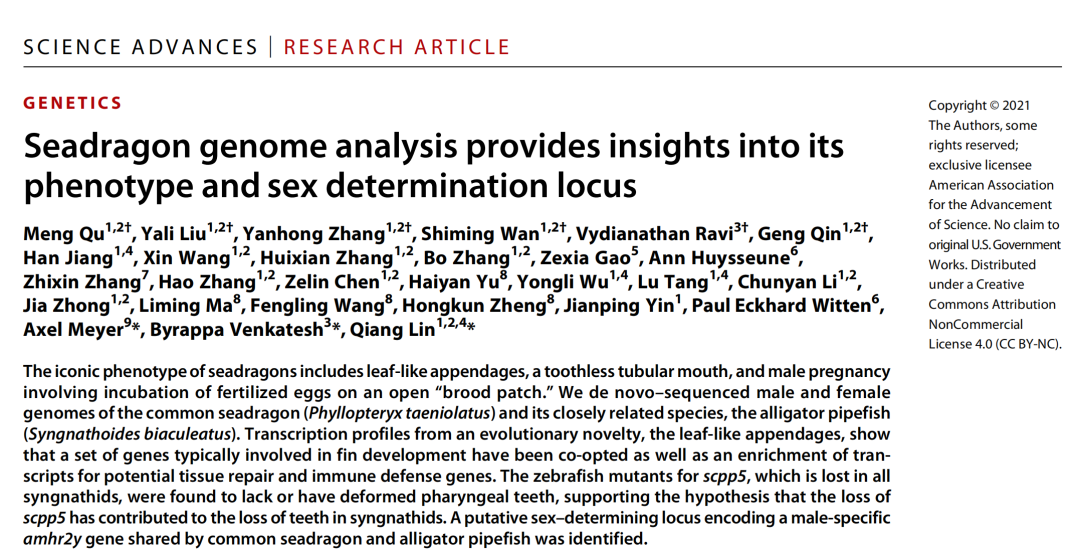 而該項(xiàng)技術(shù)也已在多項(xiàng)合作案例中成功引用,如2021年中國(guó)科學(xué)院昆明植物研究所關(guān)于無(wú)刺光葉薔薇(月季)基因組學(xué)研究成果發(fā)表在國(guó)際期刊National?Science?Review(IF:17.275),探究了月季皮刺遺傳調(diào)控機(jī)制,為更好理解植物新性狀產(chǎn)生與維持機(jī)制提供了新視角;如2021年中國(guó)科學(xué)院南海海洋研究所關(guān)于草海龍基因組學(xué)研究成果發(fā)表在國(guó)際期刊Science?Advances(IF:14.136),揭示了海龍科物種性別決定基因的產(chǎn)生和演化歷程,為海洋魚(yú)類的環(huán)境適應(yīng)性進(jìn)化研究提供了重要理論依據(jù)。