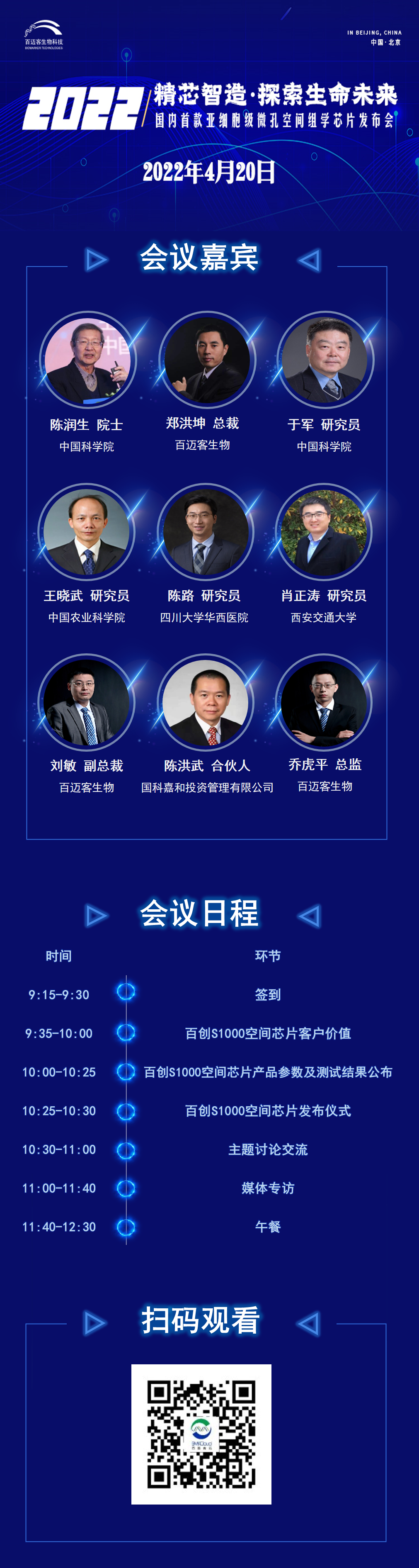 將于4月20日正式推出 百創(chuàng)S1000亞細(xì)胞級(jí)微孔空間組學(xué)芯片,屆時(shí)我們將帶著百創(chuàng)S1000空間芯片及其結(jié)果展現(xiàn)在您的眼前,您將感受到國(guó)產(chǎn)化空間轉(zhuǎn)錄組測(cè)序芯片新的震撼體驗(yàn)。