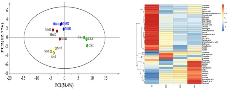 1、油斑病對(duì)初級(jí)代謝物組成的影響