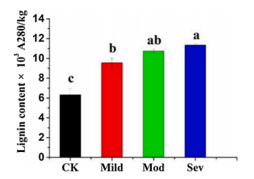 Fig. 5 不同程度油斑病檸檬皮木質(zhì)素含量