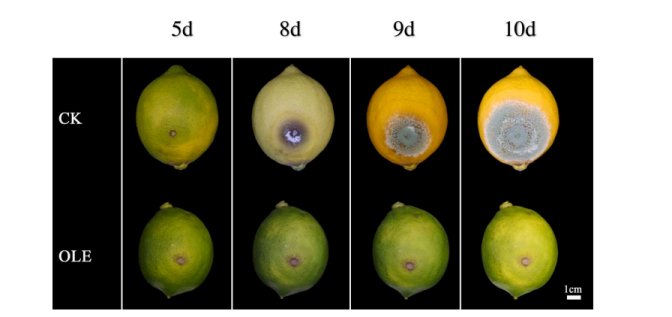 Fig. 8健康和油斑病損傷檸檬皮藍(lán)色霉菌的癥狀