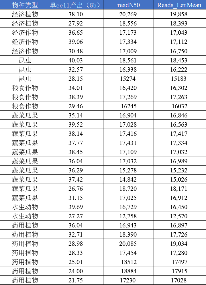 (注:物種類型、組織部位、材料狀態(tài)都是影響數(shù)據(jù)產(chǎn)出與讀長的關(guān)鍵因素,最終產(chǎn)出以實(shí)際項(xiàng)目為準(zhǔn))