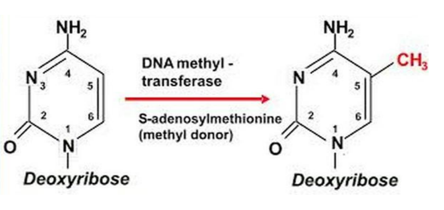 其中,胞嘧啶第5位碳原子上的甲基化(5mC)動(dòng)態(tài)修飾研究得較為深入。?在真核生物中,最常見的甲基化修飾是5mC。5mC 是DNA的CG雙核苷酸的胞嘧啶被選擇性的添加甲基,形成5-甲基胞嘧啶的過程。其作用方式:①抑制轉(zhuǎn)錄因子的結(jié)合, 從而抑制轉(zhuǎn)錄過程;②結(jié)合抑制因子, 從而抑制轉(zhuǎn)錄過程