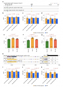 為了研究玉米非核心基因組變異與雜種優(yōu)勢(shì)之間的關(guān)系,作者得到了14個(gè)FILs雙列雜交的91個(gè)F1S,并收集了3個(gè)不同環(huán)境下的產(chǎn)量數(shù)據(jù)。表型分析表明,以單株產(chǎn)量(GYPP)計(jì)算,所有F1雜種均表現(xiàn)出超過雙親平均值的中親優(yōu)勢(shì)(MPH)和超過較好親本的超親優(yōu)勢(shì)(BPH)(圖5a)。