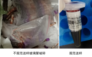 4)將樣品管置于管架上固定好后埋在干冰箱的中間部位,大體積干冰運輸。