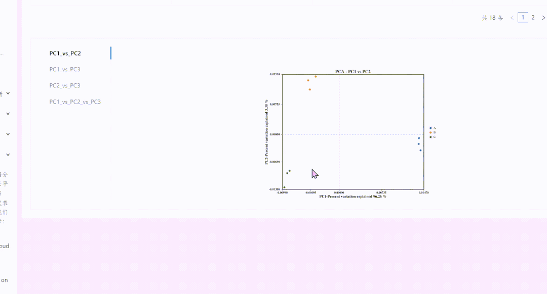 其次,以代謝組分析平臺的個性化分析PCoA圖為例,進(jìn)行操作步驟的視頻介紹: