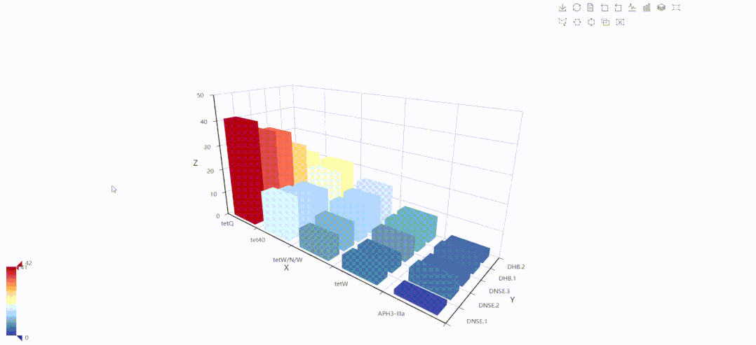 一次繪圖,多圖自由轉(zhuǎn)換。排列柱狀圖、堆疊柱狀圖、排列點線圖、堆疊點線圖、3D柱狀圖等互相自由切換。同時,只需點擊下legend圖例,即可取消掉過多的展示項,從而達(dá)到重新繪制的目的。滾動下鼠標(biāo),即可隱藏過多的樣品展示。