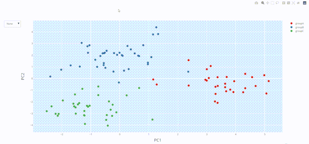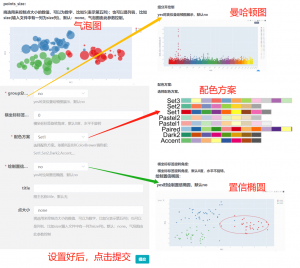 除常用的交互功能外,還支持切換為氣泡圖、曼哈頓圖、3D散點圖,組別支持置信橢圓繪制。