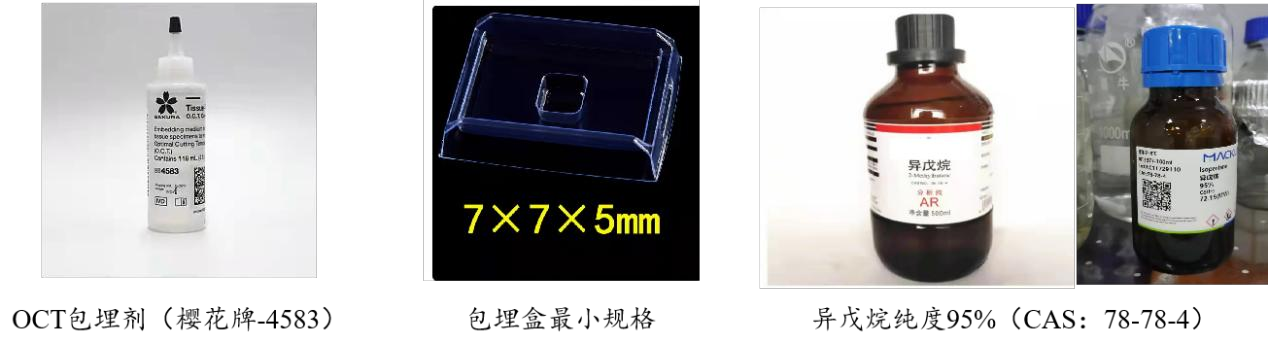 注:原則上實驗室不提供組織冷凍包埋相關(guān)試劑,需客戶網(wǎng)上自行購買,如有需要請聯(lián)系運營確認實驗室是否有存貨,因 OCT 試劑無法分裝運送,實驗室也僅僅可提供包埋盒。
