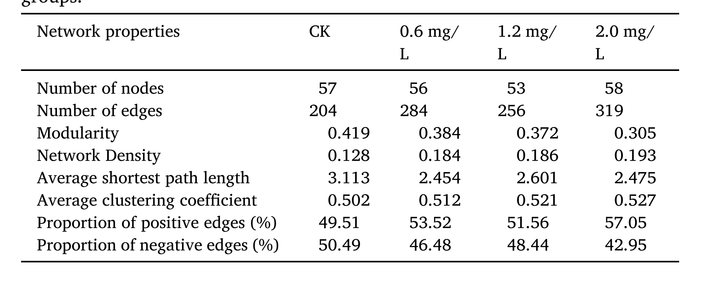 表1-不同處理組的微生物群落網(wǎng)絡的基本性質(zhì)