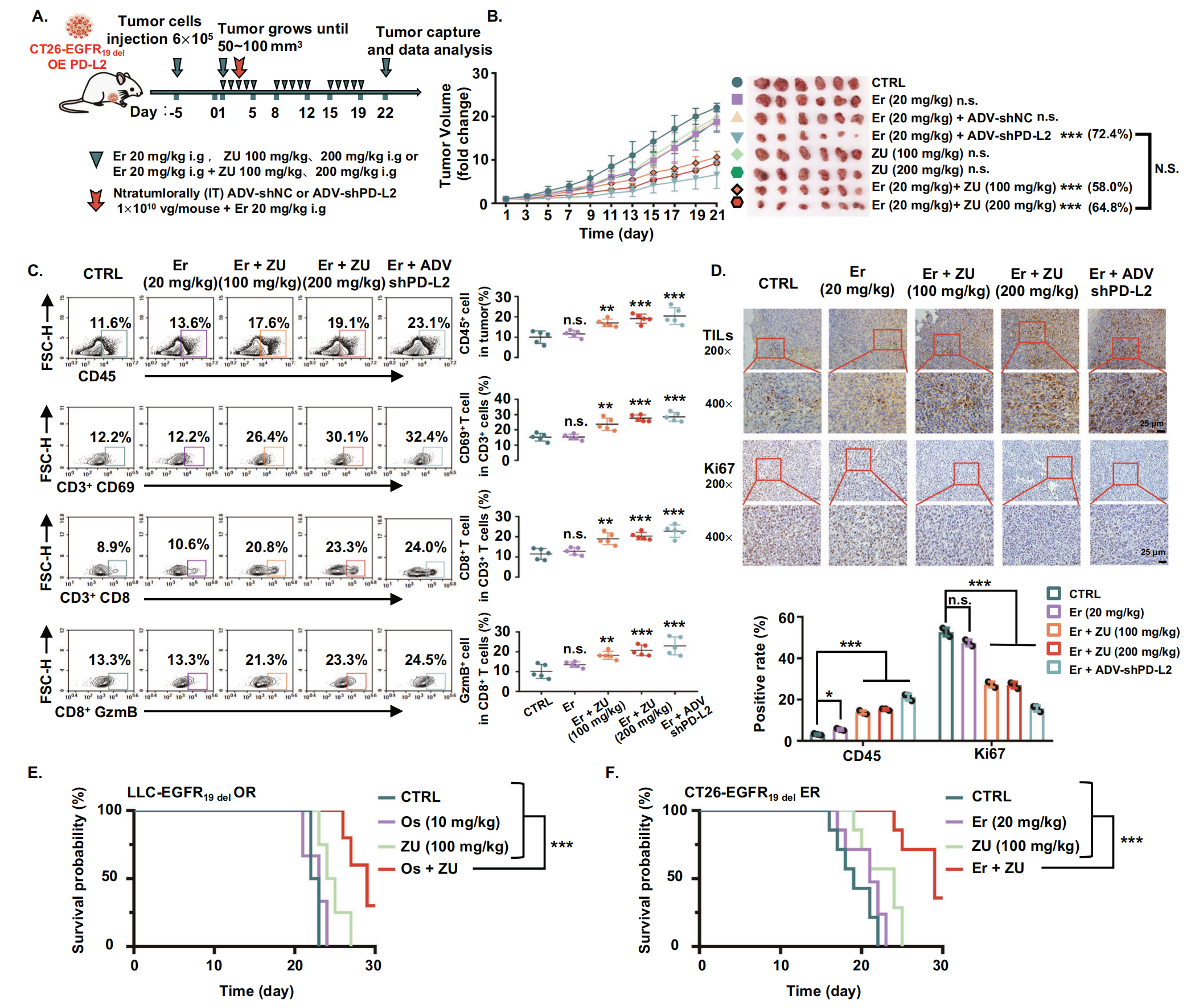 • ZU 改善抑制性腫瘤免疫環(huán)境,在體內逆轉 EGFR-TKIs 耐藥