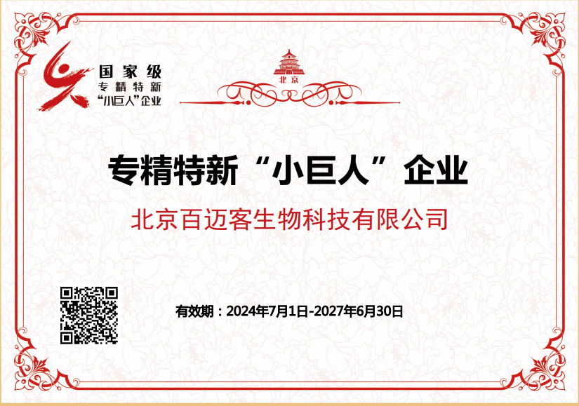 近日,由工業(yè)和信息化部組織的第六批國家級專精特新“小巨人”企業(yè)認(rèn)定工作中,北京百邁客生物科技有限公司榮獲國家級專精特新“小巨人”企業(yè)稱號。這一殊榮不僅是對百邁客生物在基因測序領(lǐng)域領(lǐng)先地位的認(rèn)可,更是對公司持續(xù)創(chuàng)新、深耕行業(yè)多年的肯定。