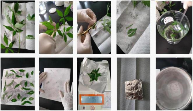 7)葉片剪下后的稱量等操作,請?jiān)?10min 內(nèi)完成,時間過長會導(dǎo)致葉片失水不可用,部分地區(qū)氣溫較高失水更快,操作時間需更短