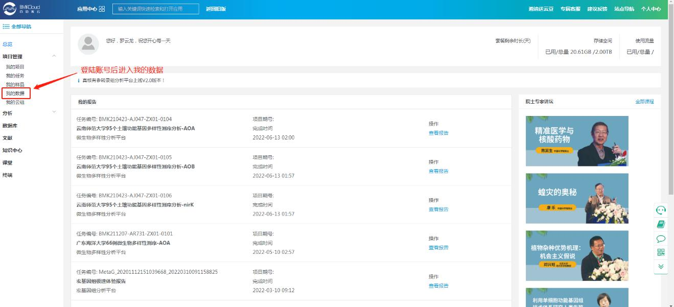 1、登陸賬號(hào)后,在主頁面查看項(xiàng)目管理,進(jìn)入“我的數(shù)據(jù)”
