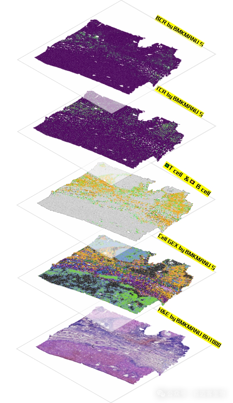 2024年12月,百邁客生物智能制造以廣受市場(chǎng)好評(píng)的亞細(xì)胞級(jí)S系列空間轉(zhuǎn)錄組芯片為依托,開(kāi)發(fā)出了在原片上可同時(shí)捕獲3’端轉(zhuǎn)錄組信息以及全長(zhǎng)B細(xì)胞受體(BCR)和T細(xì)胞受體(TCR)序列的空間T/BCR測(cè)序技術(shù)產(chǎn)品—BMKMANU?S3000-VDJ?,將填補(bǔ)這一技術(shù)產(chǎn)品的缺口。