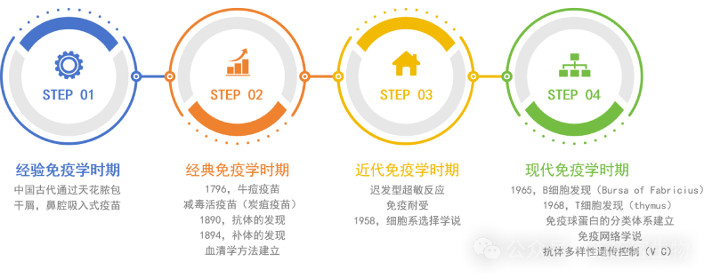 這是最早關(guān)于人類(lèi)免疫學(xué)應(yīng)用的記錄。公元前?400?年,中國(guó)可能已有人痘苗接種預(yù)防天花的方法,到?16?世紀(jì)明朝隆慶年間,人痘接種法得到重大改進(jìn)并廣泛應(yīng)用,17?世紀(jì)傳入俄國(guó)、朝鮮、日本、土耳其和英國(guó)等國(guó)家,至18世紀(jì)末結(jié)束經(jīng)驗(yàn)免疫學(xué)時(shí)期,隨后免疫學(xué)又經(jīng)歷了經(jīng)典免疫學(xué)時(shí)期,近代免疫學(xué)時(shí)期,直到1965年/1968年?B細(xì)胞/T細(xì)胞的發(fā)現(xiàn)開(kāi)啟了現(xiàn)代免疫學(xué)時(shí)期。