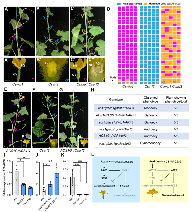 圖1 CsARF3 促進(jìn)黃瓜中的雌性化