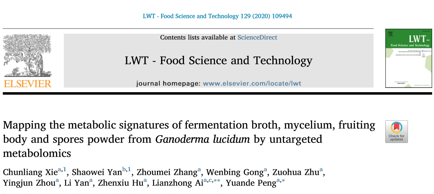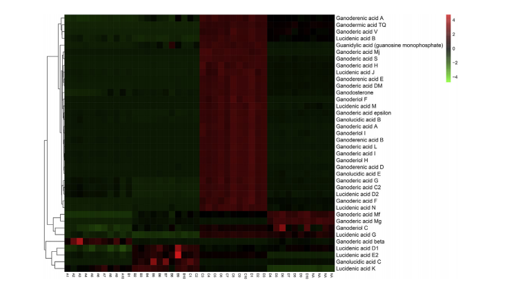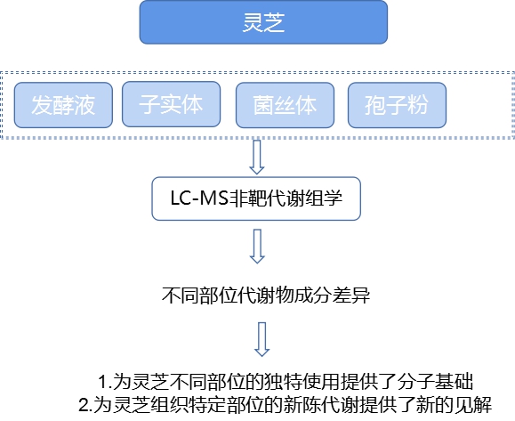 研究結(jié)果:這項(xiàng)研究運(yùn)用靈芝的不同部分,通過非靶向代謝組學(xué)研究靈芝不同部位的功能和藥效。根據(jù)非靶向代謝組學(xué)的結(jié)果,得出子實(shí)體可以特別用作抗腫瘤和抗艾滋病藥物;孢子粉可用于開發(fā)治療肝病和糖尿病的藥物;靈芝的四個部分可用于抗氧化劑領(lǐng)域。本研究為靈芝的質(zhì)量評價和綜合利用提供了理論依據(jù)。