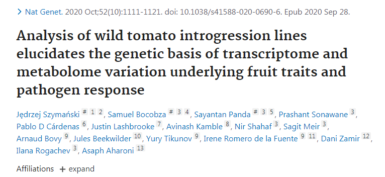 利用野生番茄漸滲系闡明轉(zhuǎn)錄組和代謝組變異對果實(shí)性狀和病原菌響應(yīng)的遺傳基礎(chǔ)的潛在影響