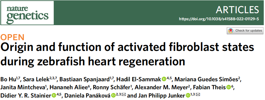 成年哺乳動物的心臟損傷通常會導(dǎo)致永久性瘢痕。然而,成年斑馬魚心臟損傷后能有效再生,這使得斑馬魚成為研究心臟再生細(xì)胞和分子機(jī)制的理想模型。在模擬心肌梗塞的低溫?fù)p傷后,受傷的斑馬魚心臟會經(jīng)歷一個短暫的纖維化期。在此期間,受損的心肌會通過去分化和增殖進(jìn)行再生,這與心肌梗死的某些方面相似。然而,在以往的斑馬魚心臟再生研究中,還沒有系統(tǒng)的數(shù)據(jù)來確定再生細(xì)胞的狀態(tài)和細(xì)胞類型的起源,對再生生態(tài)位的細(xì)胞組成、潛在的信號傳遞和相互作用的認(rèn)識仍不全面。目前對活化巨噬細(xì)胞和成纖維細(xì)胞的定義嚴(yán)重依賴于轉(zhuǎn)基因,可能受到觀察偏差的影響,從而低估斑馬魚心臟再生過程中細(xì)胞狀態(tài)的復(fù)雜性。