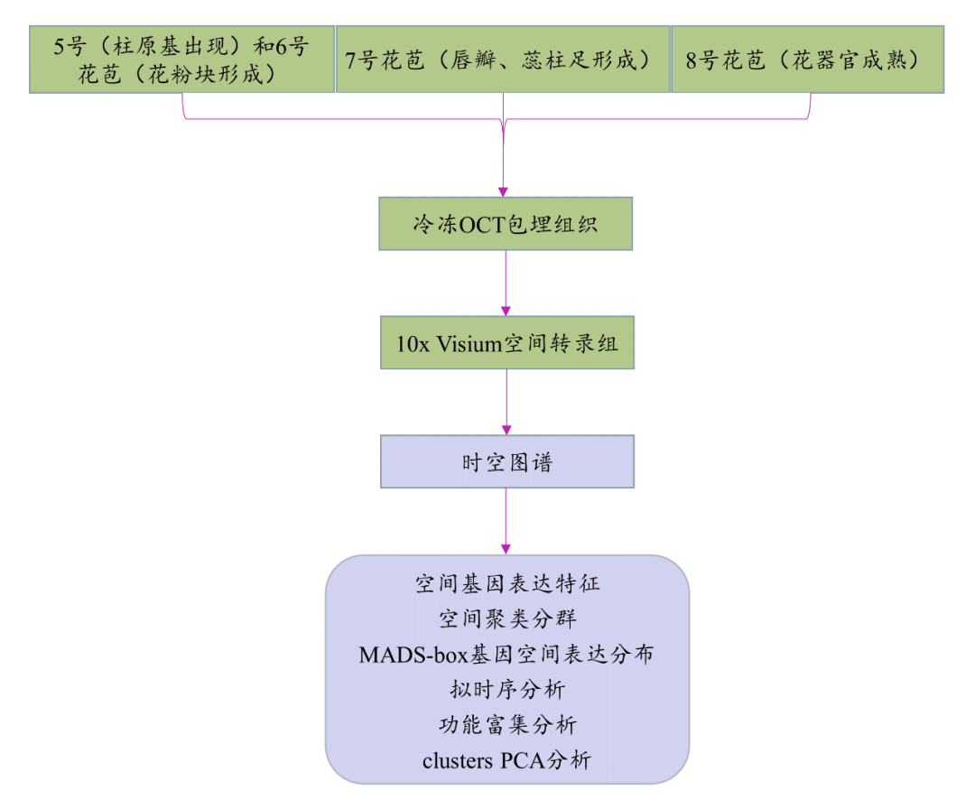 圖1?基于空間轉(zhuǎn)錄組學(xué)的蘭花早期發(fā)育階段器官發(fā)生的重建