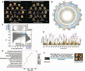 野生枇杷為改良品種的馴化和育種研究提供了豐富的遺傳資源。作者組裝出野生枇杷染色體水平的基因組,比較基因組研究表明枇杷與蘋果和梨擁有一個共同的祖先,且在枇杷分化之前就發(fā)生了一次WGD事件?;蚪M重測序結(jié)果表明,野生枇杷較栽培枇杷具有較高的遺傳多樣性,果實(shí)質(zhì)量、大小和葉片顏色相關(guān)性狀基因在馴化過程中受到了選擇。進(jìn)一步通過轉(zhuǎn)錄組和代謝組分析鑒定到野生和栽培枇杷在果實(shí)發(fā)育不同階段的DEGs和DAMs,關(guān)鍵差異基因和代謝物主要涉及糖代謝、植物激素信號轉(zhuǎn)導(dǎo)、類黃酮和類胡蘿卜素生物合成。這些高質(zhì)量的參考基因組、重測序、轉(zhuǎn)錄組和代謝組分析為闡明枇杷的果實(shí)馴化和分子育種研究提供了有利保障。