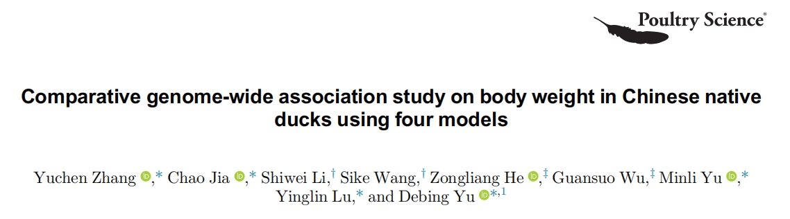 鴨子為人類消費提供肉、蛋、羽毛等產(chǎn)品,中國是世界上最大的鴨肉消費國。金陵白鴨做為我國優(yōu)質(zhì)的選育品種,具有優(yōu)良的生長速度和肉質(zhì)品質(zhì)。從孵化到上市的整個時期,鴨子的體重逐漸增加,這一過程由復雜的生理和生化機制調(diào)控,器官和骨骼的發(fā)育是體重增加的關(guān)鍵因素,全基因組關(guān)聯(lián)分析(GWAS)是許多牲畜和家禽物種研究生長和發(fā)育的遺傳機制的常用方法,然而,現(xiàn)有的一些關(guān)于鴨生長發(fā)育性狀的GWAS研究測序深度較低,發(fā)現(xiàn)的候選基因很少。