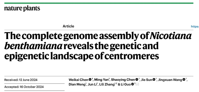 文章標題:The complete genome assembly of?Nicotiana benthamiana?reveals the genetic and epigenetic landscape of centromeres