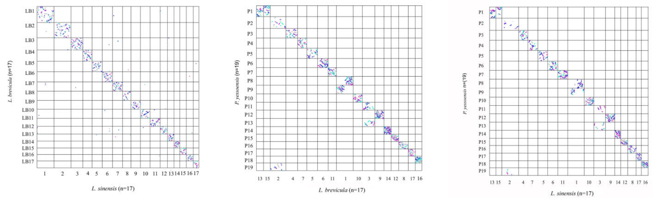 通過共線性分析,研究發(fā)現(xiàn)15個杜鵑基因組普遍表現(xiàn)出良好的共線性(圖1O)。共線性區(qū)組數(shù)從336個(R. henanense?vs?R. delavayi)到692個(R. irroratum?vs?R. prattii)。此外,還發(fā)現(xiàn)了一些基因組轉(zhuǎn)座現(xiàn)象,如R. ovatum7號染色體的末端區(qū)域與R. simsii和R. henanense。