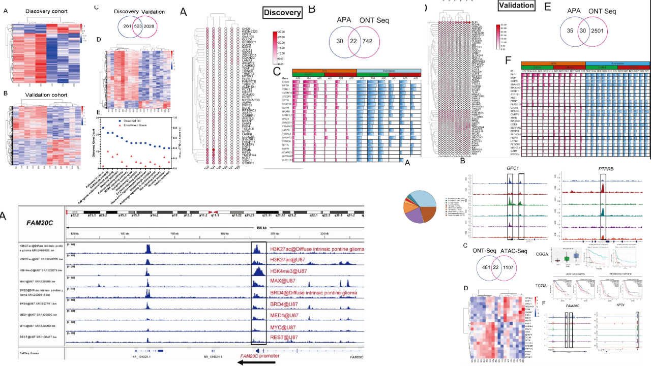 神經(jīng)膠質(zhì)瘤是神經(jīng)系統(tǒng)中最常見的原發(fā)性腫瘤,攻擊力極強,約占所有腦腫瘤的80%,目前主要的癌癥治療方案,包括手術(shù)切除、放療和化療,都會導(dǎo)致預(yù)后不良和高死亡率,很難對膠質(zhì)瘤提供理想的治療效果,因此現(xiàn)在迫切需要探索新的有效策略以及膠質(zhì)瘤治療的潛在治療靶點。長讀長RNA測序技術(shù)已應(yīng)用在包括肝細(xì)胞癌和非小細(xì)胞肺癌等多種癌癥類型中,ATAC-seq也已經(jīng)應(yīng)用于胰腺癌、胃癌和乳腺癌等多種腫瘤研究中。FAM20C是一種可調(diào)節(jié)分泌途徑中的各種網(wǎng)絡(luò)的分泌蛋白,主要負(fù)責(zé)礦化激酶,然而越來越多的研究表明,FAM20C?與包括包括乳腺癌、膀胱癌和結(jié)直腸癌在內(nèi)的多種癌癥廣泛相關(guān)。