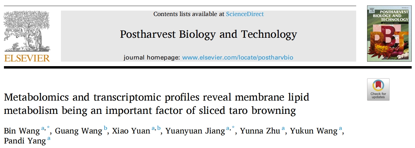 文章標(biāo)題:Metabolomics and transcriptomic profiles reveal membrane lipid metabolism being an important factor of sliced taro browning