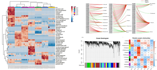 基因相關(guān)網(wǎng)絡(luò):三個(gè)模塊與揮發(fā)性化合物的合成具有高度的相關(guān)性,但三個(gè)模塊中的基因表現(xiàn)出不同的組成和表達(dá)模式,說明不同模塊中的基因在揮發(fā)性化合物的合成中可能發(fā)揮不同的功能。