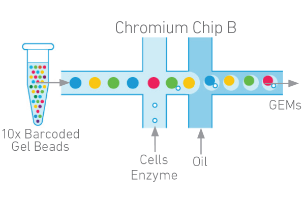 10 X Genomics單細(xì)胞轉(zhuǎn)錄組測(cè)序平臺(tái)利用微流控、油滴包裹和Barcode標(biāo)記等技術(shù)來(lái)實(shí)現(xiàn)高通量的細(xì)胞捕獲技術(shù),能夠一次性分離、并標(biāo)記500–10000個(gè)單細(xì)胞,從而獲得每個(gè)細(xì)胞的3’端的轉(zhuǎn)錄組信息。具有細(xì)胞通量高、建庫(kù)成本低、捕獲周期短等優(yōu)勢(shì)。該技術(shù)主要用于細(xì)胞分型和標(biāo)記因子的鑒定,從而實(shí)現(xiàn)對(duì)細(xì)胞群體的劃分與細(xì)胞群體間基因表達(dá)差異的檢測(cè),此外該技術(shù)還可以預(yù)測(cè)細(xì)胞分化與研究發(fā)育軌跡,在當(dāng)下疾病、免疫、腫瘤領(lǐng)域以及組織、器官、發(fā)育研究中發(fā)揮越來(lái)越重要的作用。