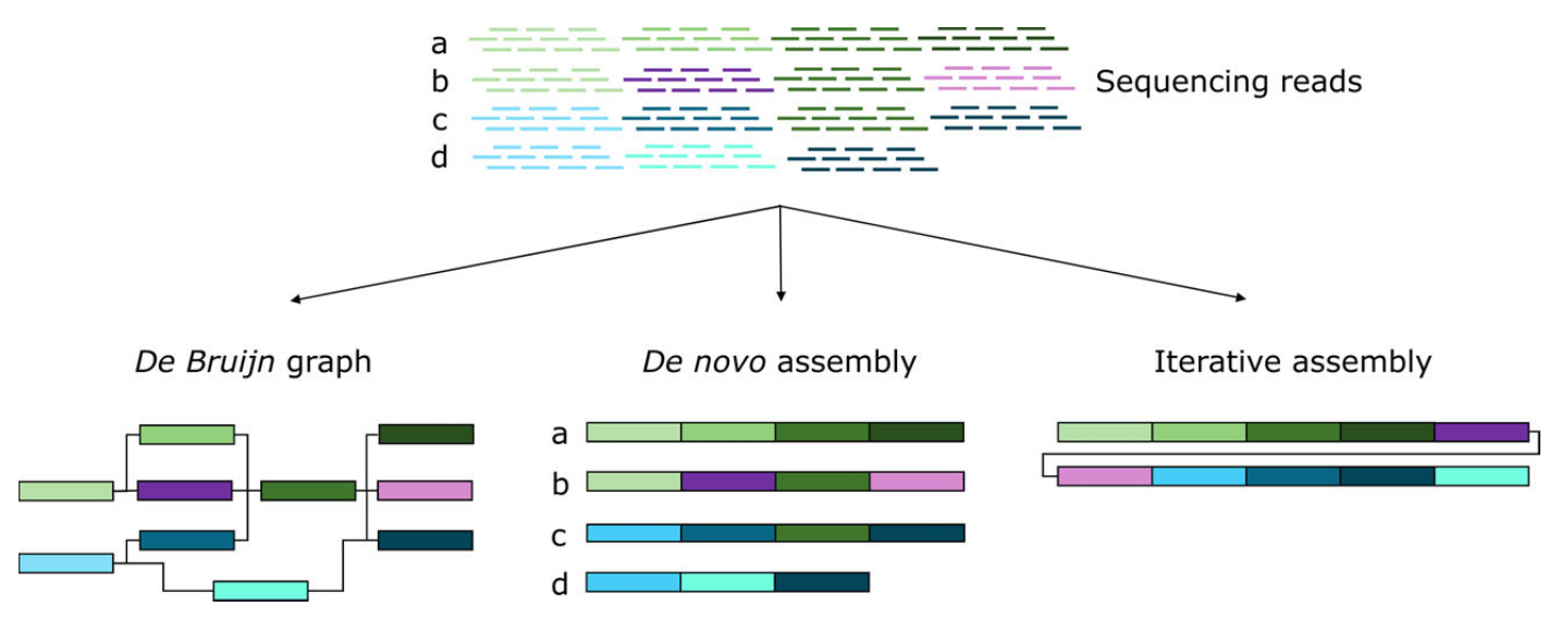 泛基因組主要有3種構(gòu)建方法:Map to pan,Iterative assembly和De novo assembly。從頭組裝(De novo assembly):是構(gòu)建泛基因組或者參考基因組最經(jīng)典的方法,分別對多個(gè)個(gè)體分別進(jìn)行從頭組裝并且注釋,然后將所得的每個(gè)個(gè)體的組裝好的序列與參考序列基因組進(jìn)行互相比對,找出比對不上的區(qū)域或者基因,這些個(gè)體獨(dú)特的基因就是非核心基因。