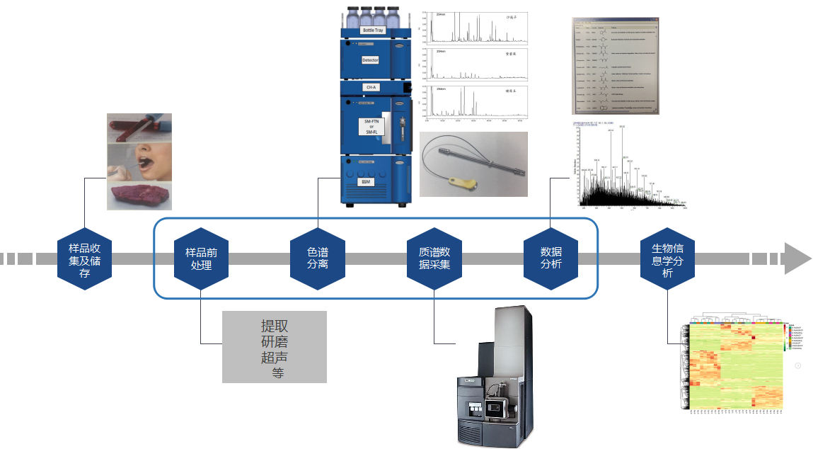 非靶向代謝組學又稱為發(fā)現(xiàn)代謝組學,基于色譜質(zhì)譜聯(lián)用技術(shù)(LC-MS、GC-MS),無偏向、盡可能多地檢測細胞、組織、器官或體液等生物樣本內(nèi)所有小分子代謝物,對實驗組和對照組進行對比分析,通過統(tǒng)計分析篩選差異代謝物,對差異代謝物進行代謝通路分析,進而尋找代謝物與生理病理變化的相對關(guān)系。