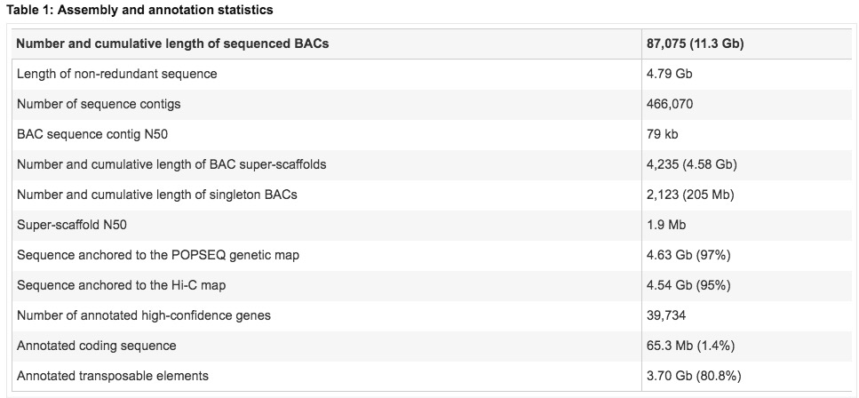 到底是什么解救了大麥基因組?廢話不多說,看看人家的組裝結(jié)果(表1)。